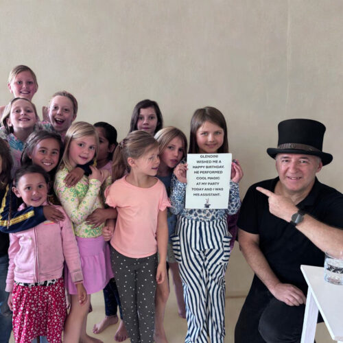 Glen McMeeking, also known as Glendini, is a magician and entertainer who brings excitement, humour, and interactive fun to children’s parties and events. Combining magic with elements of escape artistry, his performances are designed to capture attention and keep young audiences engaged throughout the show.